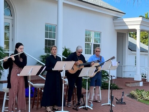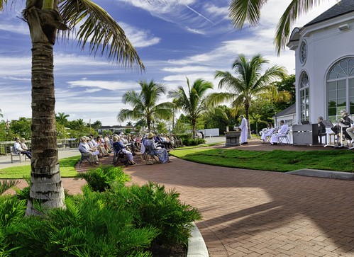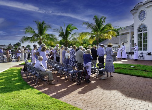 From October through Easter, Trinity offers a 9:00 a.m. Rite III Eucharist in the Parish Hall overlooking the cove. This liturgy uses more contemporary language and musical accompaniment—featuring piano, guitar, violin, and hymns both ancient and modern. Once a month (and on special occasions), the congregation gathers outside on the dock itself, joining in prayer and praise surrounded by the beauty of creation.